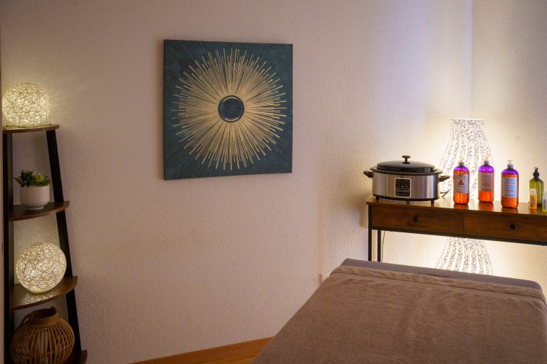 Aux Soins d’Adrien, j’offre un espace calme et appaisant où le massage rencontre des soins personnalisés. Niché dans un coin tranquille de ma maison, ce lieu chaleureux est conçu pour vous aider à vous détendre et à vous déconnecter du stress quotidien. Un éclairage tamisé, une musique douce et des parfums choisis créent une atmosphère qui se rapproche davantage d’une retraite que d’un salon de massage classique.